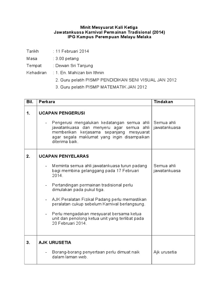 1.3 download contoh minit mesyuarat 3. .keempat biro kewangan kolej pendeta za'ba tarikh : Minit mesyuarat kewangan kali 1 2010. Tarikh hari tempat masa : Use the download button below or simple online reader.