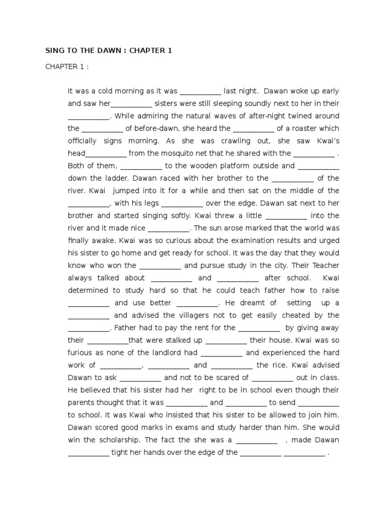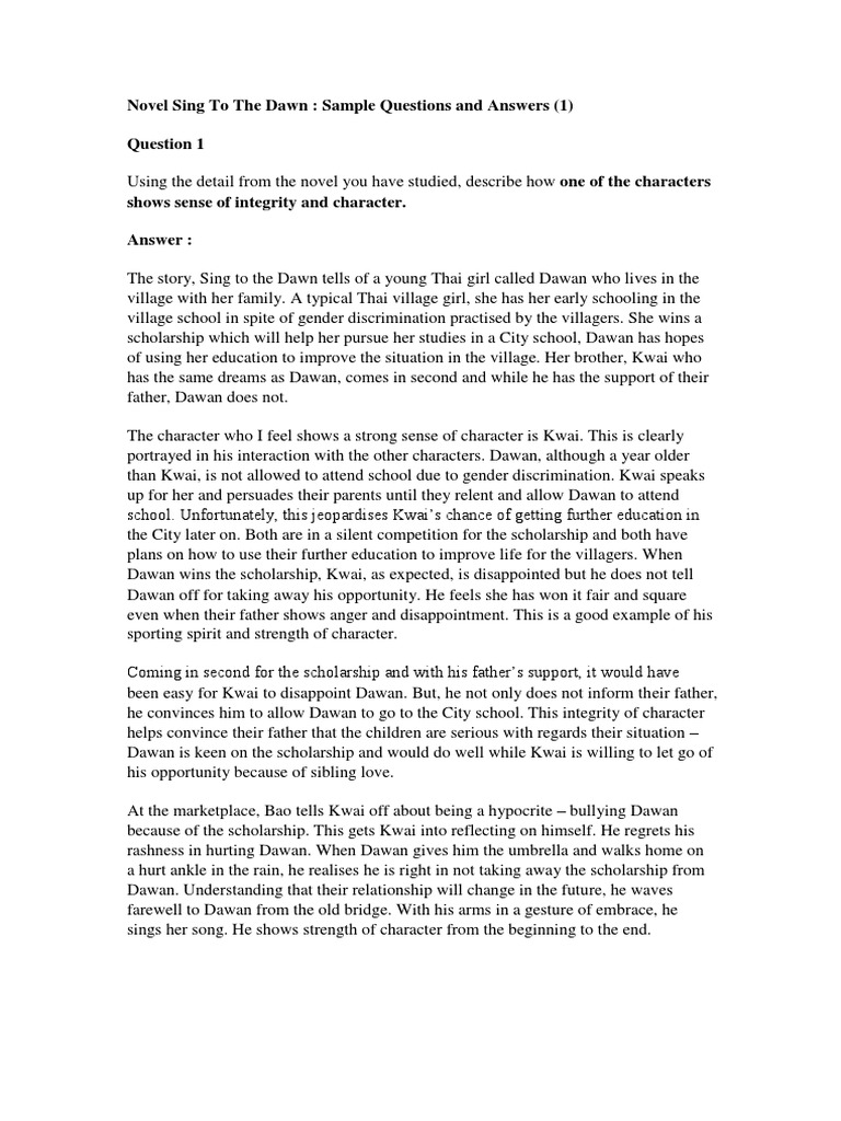Sample Novel Sing To The Dawn Essay from 3.bp.blogspot.com ( page 117 , paragraph 1. Sing to the dawn is a short story by minfong ho, later expanded into a novel. Really have to say that i like it that much as it is a very good reading and has many to offer to the readers. Kwai's dad thought that boys going to the city to futher his studies would be better than girls. Experience the first ever musical theatre based on the form 5. Synopsis, setting, characters, themes, moral values, sample questions + answers : What is going to happen now ? :) design by dóri sirály for prezi chapter 7 summary !