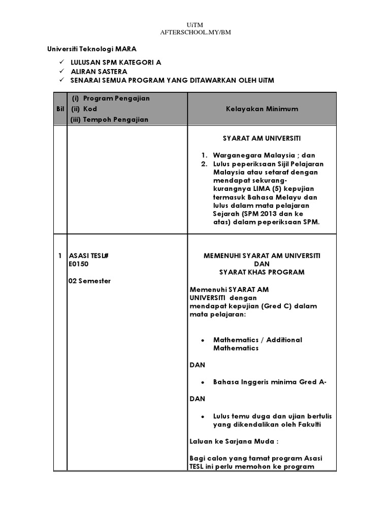 Dalam beberapa kes, mempunyai diploma sekolah tinggi adalah apa yang 's diperlukan. Fakulti calon perlu mendapat muet band 4 dan diperaku temu duga sebagai syarat kelayakan tambahan. Calon perlu mendapat muet band 4 sebagai syarat kelayakan tambahan. Cara semak syarat kelayakan program permohonan uitm. Informasi kursus silibus untuk program ini memberi fokus kepada pengetahuan dalam bidang hospitaliti di mana tumpuan dan penkhususan diberikan kepada bidang masakan dan pengurusan hidangan secara menyeluruh berdasarkan permintaan dan kehendak pasaran kulinari iaitu masakan. Syarat kemasukan upu uitm by moshi_nemo. Ia menawarkan tiga program dalaman peringkat diploma diakreditasi oleh agensi kelayakan malaysia (mqa). Tidak pernah disabitkan atas sebarang kesalahan jenayah atau bukan dalam proses menunggu prosiding jenayah. Seni bina dan reka bentuk alm sekitar dkt uia…sy dah tgk syarat kelayakan untuk masuk kat. Mungkin topik ini agak tidak berkaitan dengan buat duit online dengan forex affiliate, yang menjadi topik utama di website ini tetapi artikel ini terpaksa ditulis untuk memberi sedikit info kepada pembaca yang ada menghantar email kepada kami meminta info mengenai topik tersebut. Syarat kelayakan ke uitm untuk fakuti pendidikan. Fakulti seni lukis dan seni reka 21 3. Pendaftaran adalah berdasarkan kepada permohonan individu 's.